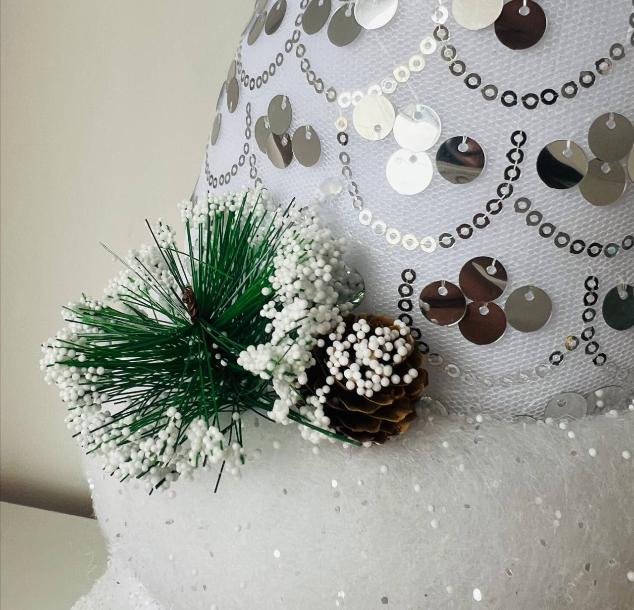 Con Bufandas y Gorros Puntiagudos de tela con adornos de lentejuelas